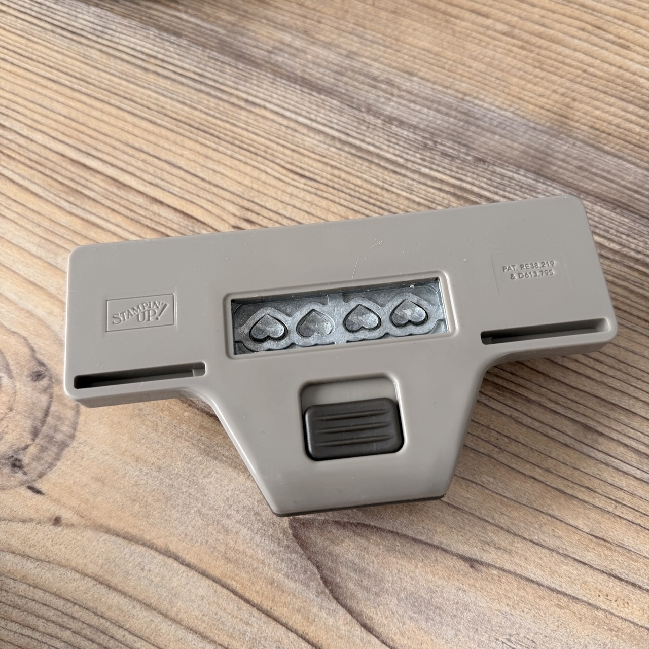 Dieser Punch war Teil des Stampin’ Up! Sortiments und wurde unter anderem während der Sale-A-Bration 2016 häufig für Kartengestaltungen eingesetzt. Mit ihm lassen sich schnell und einfach gleichmäßige Herzbordüren für Hochzeitskarten, Valentinsgrüße oder Geburtstagskarten gestalten.