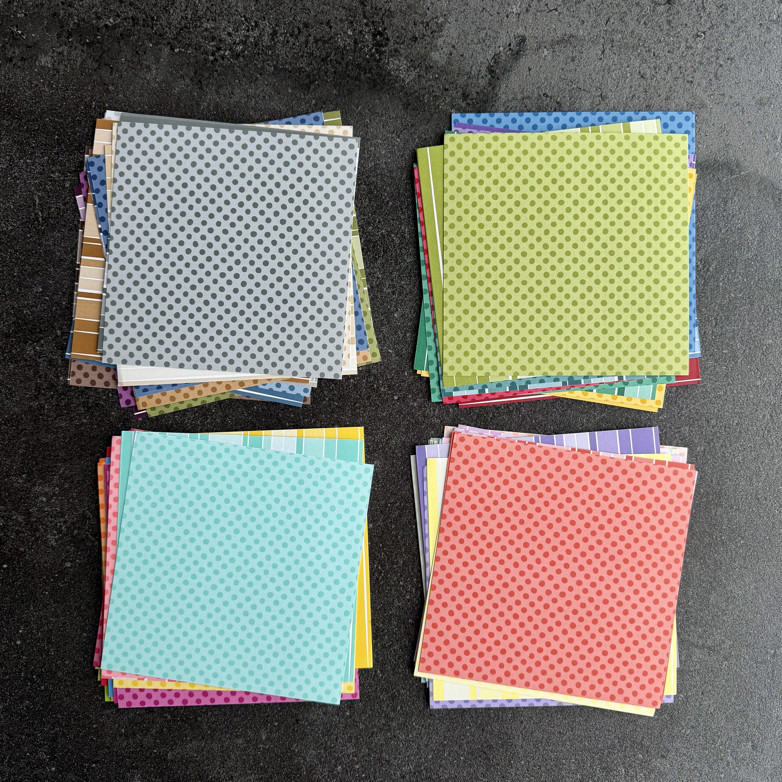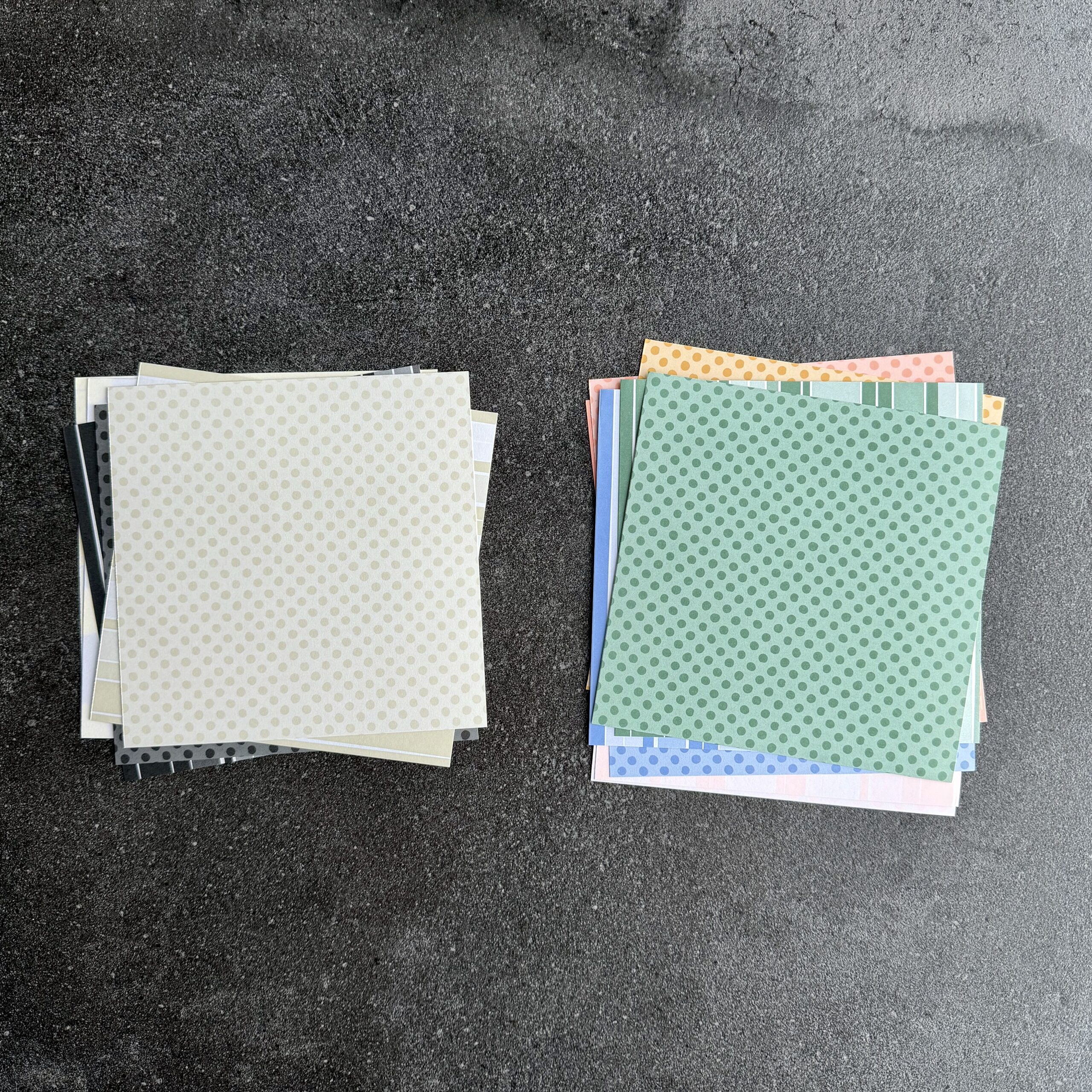 Bei diesem Angebot hier sind 96 Zuschnitte aus folgenden Papieren in ca. 15,2 x 15,2 cm (6 x 6″) dabei: