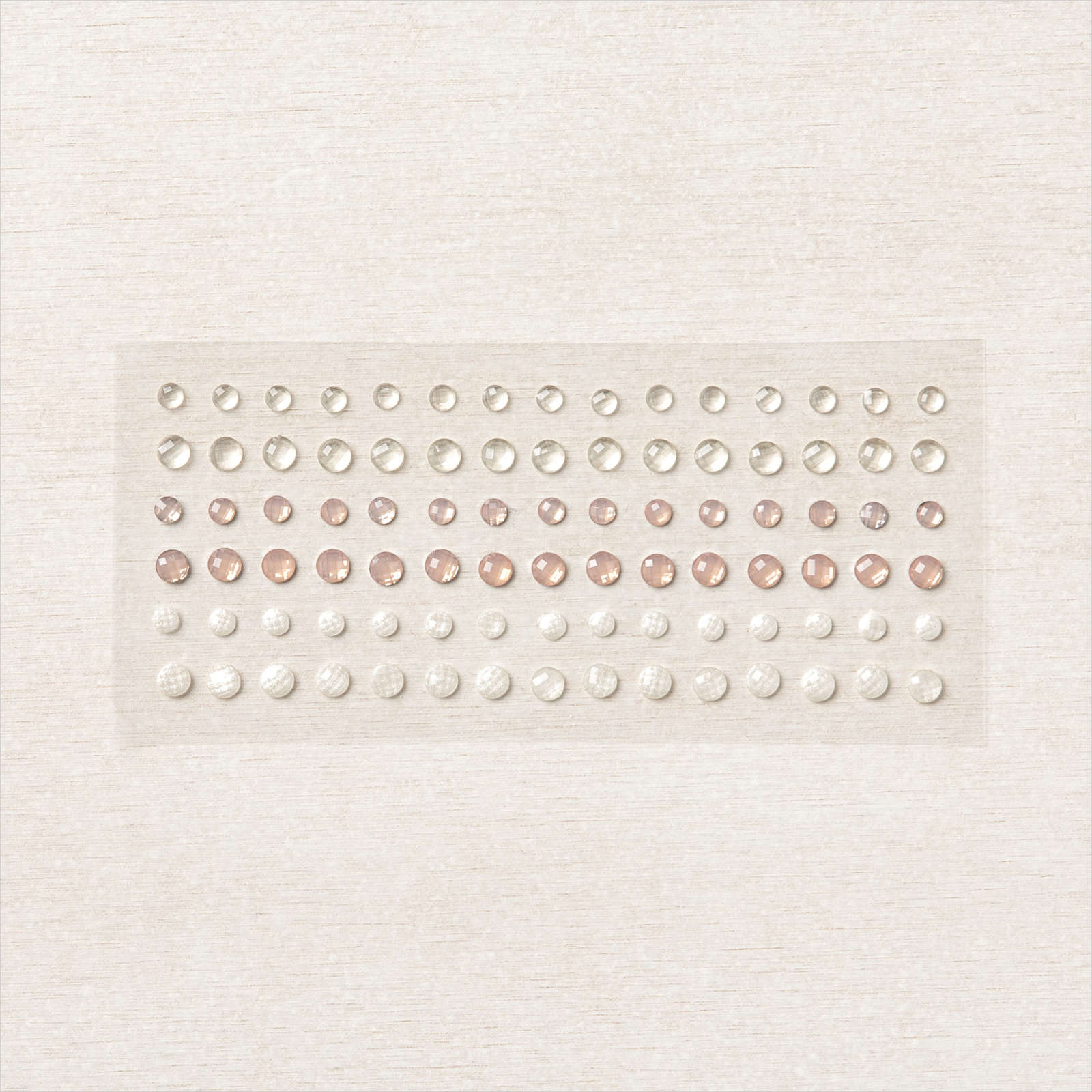 Facettierte, selbstklebende Glitzersteine in Klar, Blütenrosa und Perlweiß für vielseitige Bastelideen.