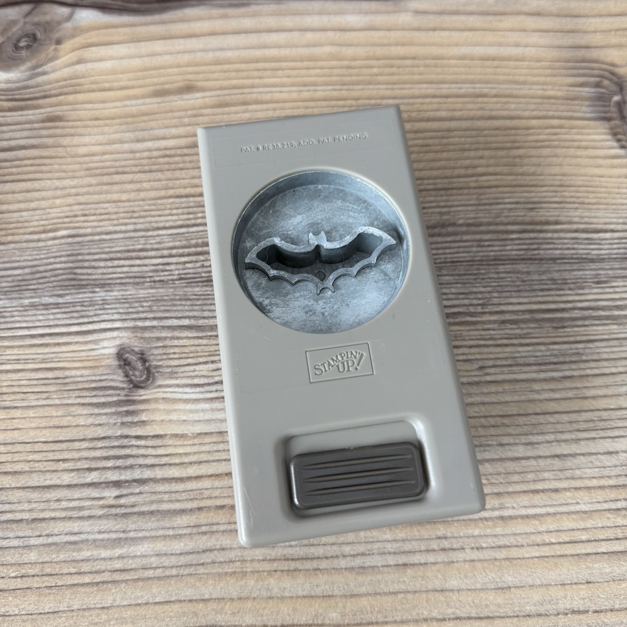 Diese Minihandstanze von Stampin’ Up! stanzt Fledermaus-Motive aus Papier und Karton. Mit ihrem kompakten Format lässt sie sich bequem handhaben und ermöglicht präzise Schnitte für Halloween-Karten, herbstliche Dekorationen oder gruselige Bastelprojekte.