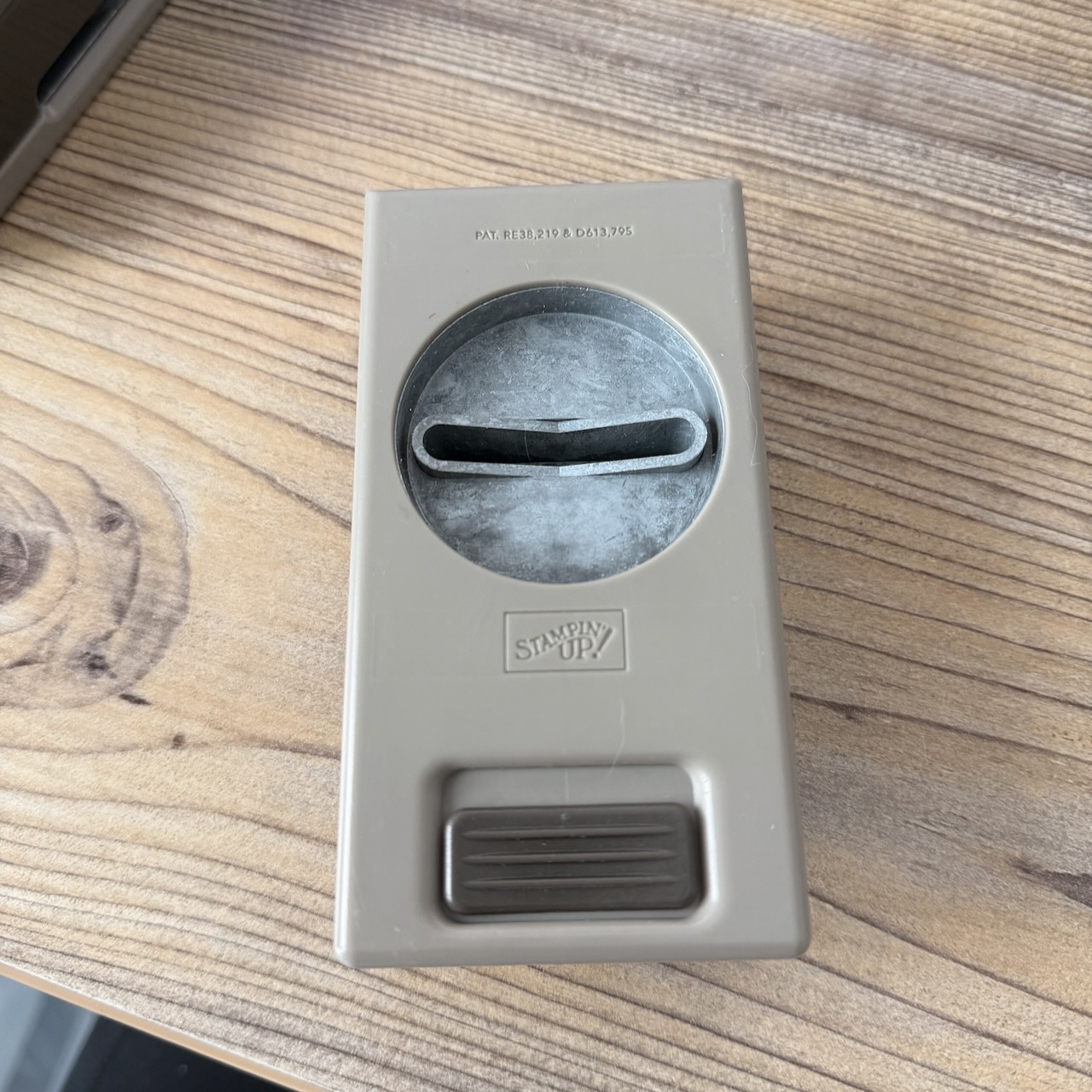 Mit der Handstanze Wortfenster stanzt Du ein Etikett aus Karton und Papier. Diese praktische Handstanze wurde 2013 von Stampin’ Up! herausgegeben und ist ein kompaktes Werkzeug für deine Kartengestaltung und Papierprojekte.