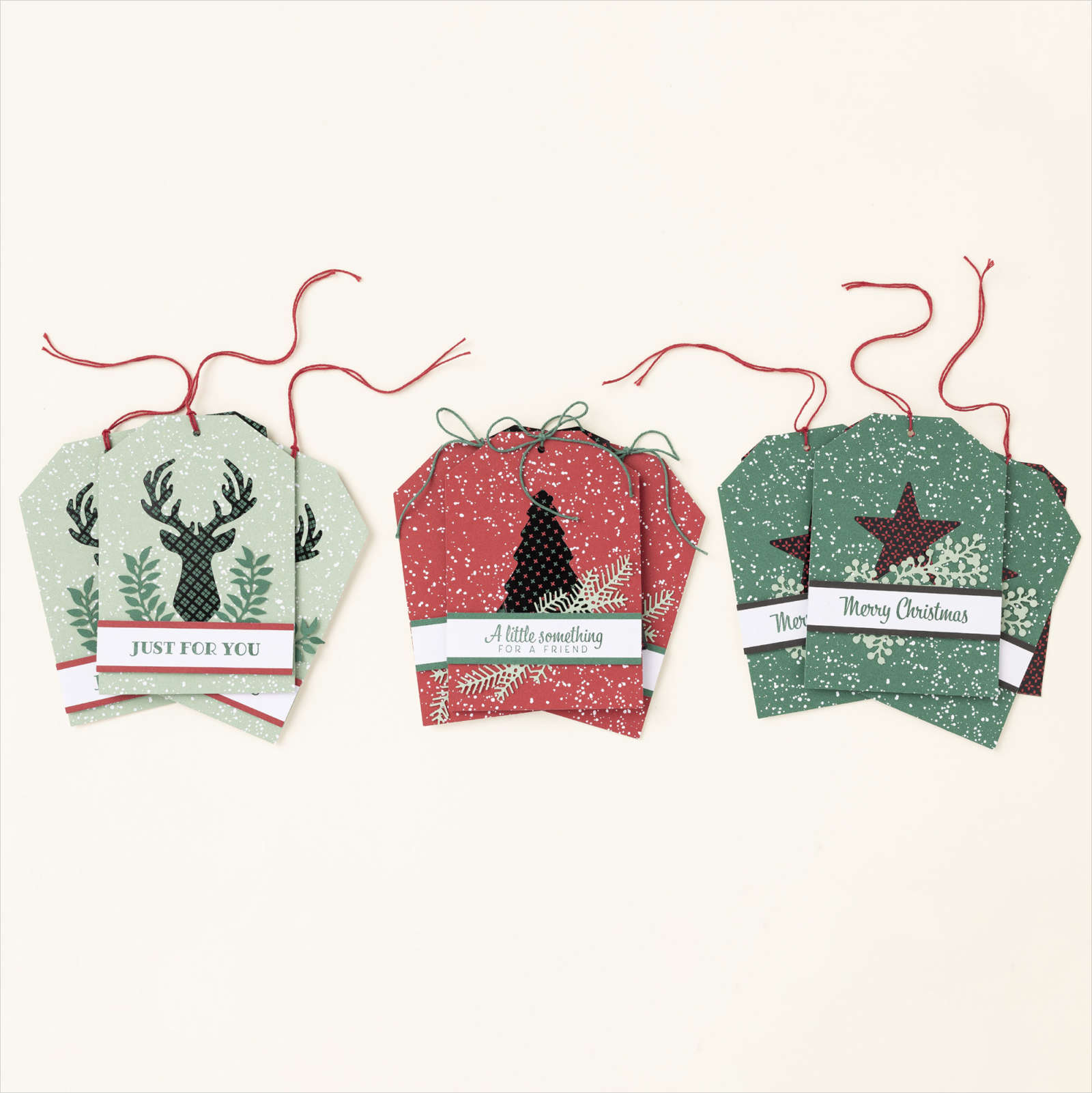Das Kreativset Gut Geschenkt ist ein komplettes Bastel-Set für festliche Geschenkanhänger und Geschenkkarten-Verpackungen. Es enthält ein Klarsichtstempelset mit passenden Motiven, einen Acrylblock zum Stempeln und ein Stampin’ Spot Stempelkissen in Tannengrün.