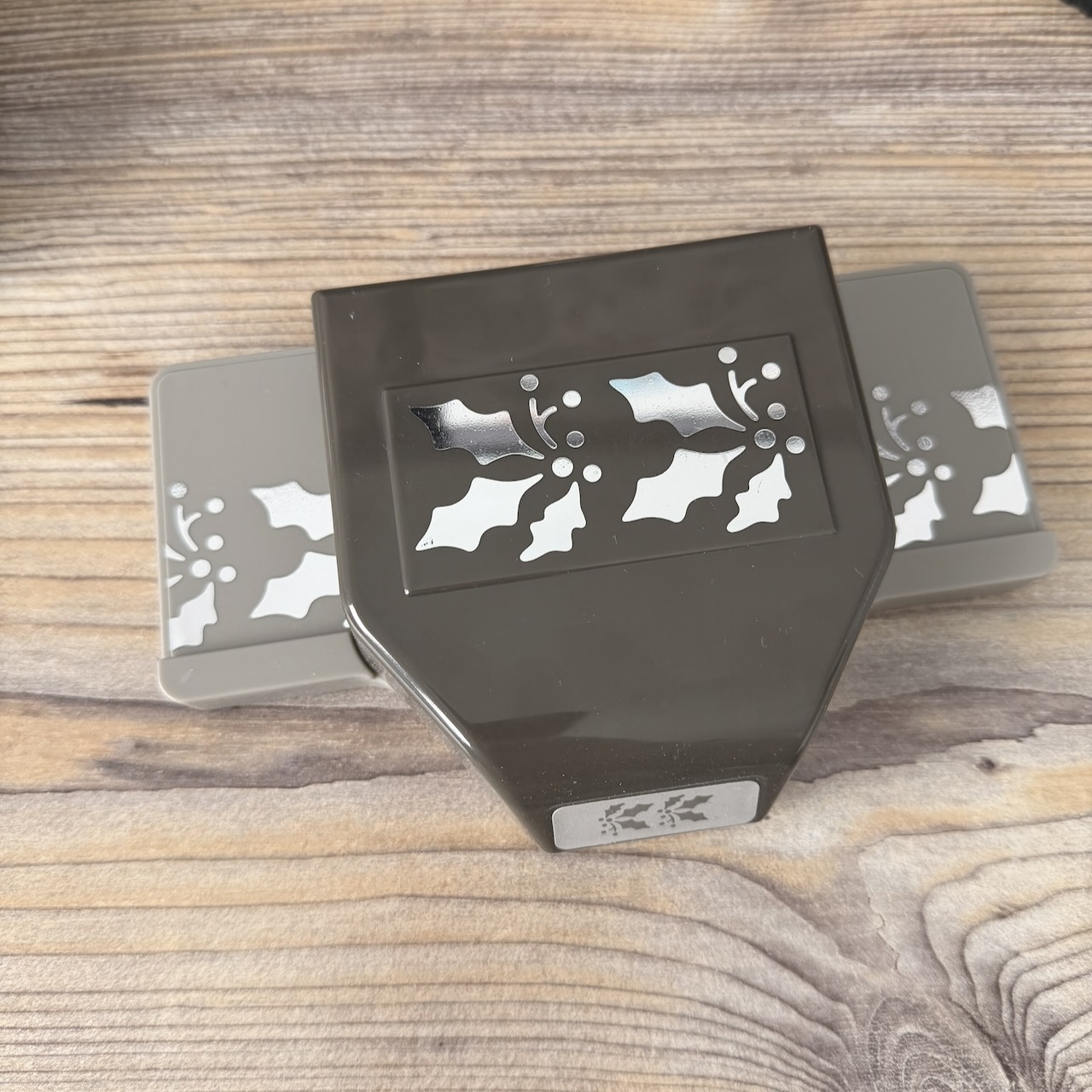 Die Stanze Stechpalmen-Bordüre zaubert festliche Stechpalmen-Bordüren aus Papier – perfekt für weihnachtliche Karten und winterliche Bastelprojekte. Das größte Stanzmotiv misst 1″ x 1-1/4″ (2,5 x 3,1 cm) und lässt sich mit dem manuellen Stanzer präzise ausstanzen.