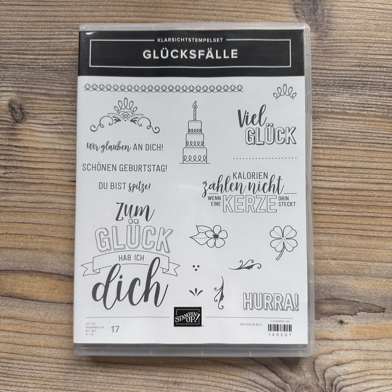 Das Glücksfälle Klarsichtstempelset bringt positive Energie in deine Kartengestaltung. Mit dem großen “Glück”-Stempel als Herzstück, filigranen Schmetterlingen, charmanten Kleeblättern und dekorativen Schnörkeln lassen sich vielfältige Kompositionen gestalten. Die einzelnen Motive können individuell kombiniert und koloriert werden. Ergänzende Grüße wie “Hurra” runden das Set ab und machen es zu einem vielseitigen Begleiter für Glückwunschkarten und fröhliche Bastelprojekte.