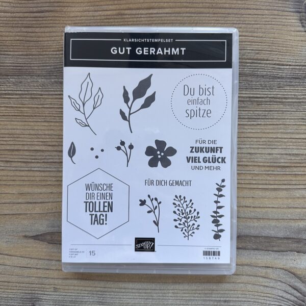 Gut Gerahmt ist ein Klarsicht-Stempelset (Photopolymer) von Stampin’ Up!, speziell für den deutschsprachigen Markt entworfen. Diese transparenten Stempel lassen sich leicht auf Acrylblöcke aufsetzen und bieten vielseitige Möglichkeiten zur Gestaltung von Papierprojekten. Die Motive sind ein Mix aus floralen Motiven und deutschen Sprüchen. Das Set erschien erstmals im Jahreskatalog 2022–2023 von Stampin’ Up!.