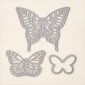 Mit den Big Shot Thinlits Butterflies (137360) erhältst du ein Set aus 3 filigranen Metall-Stanzformen, die für präzise Schmetterlingsmotive sorgen. Entwickelt für die Nutzung mit der Big Shot und vergleichbaren Stanzmaschinen, bieten die Formen eine Auswahl von detailreichen bis hin zu schlichten Umrissmotiven. Das Set erschien im Frühjahr-/Sommerkatalog 2015 und wurde international vertrieben. Besonders schön lassen sich die Motive mit dem passenden Stempelset Schmetterlingsgruß (138355) kombinieren, das jedoch nicht im Lieferumfang enthalten ist.